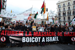 Barcelona va viure ahir una de les manifestacions més grans d'aquests últims anys, després de les sobiranistes i contra la guerra de l'Irac, en suport a Palestina. Milers de persones (100.000, segons l'organització; 30.000, segons la Guàrdia Urbana) es van manifestar convocades per tres centenars d'entitats i col·lectius, com la plataforma Aturem la Guerra i la Comunitat Palestina de Catalunya, per demanar 'la fi del bloqueig, les matances i els càstigs col·lectius intolerables que pateix el poble palestí'. La manifestació va ser encapçalada per una important presència de la comunitat àrab, amb moltes banderes palestines i estelades i pancartes amb el lema 'Gaza, yes we can'. La manifestació es va tancar a la plaça de Sant Jaume, on el cantant Lluís Llach va llegir un manifest en què es reclamava la retirada militar de Gaza i que el govern català trenqui relacions amb les institucions d'Israel. L'actriu Rosa Maria Sardà també va llegir un text, en aquest cas secundat per artistes.